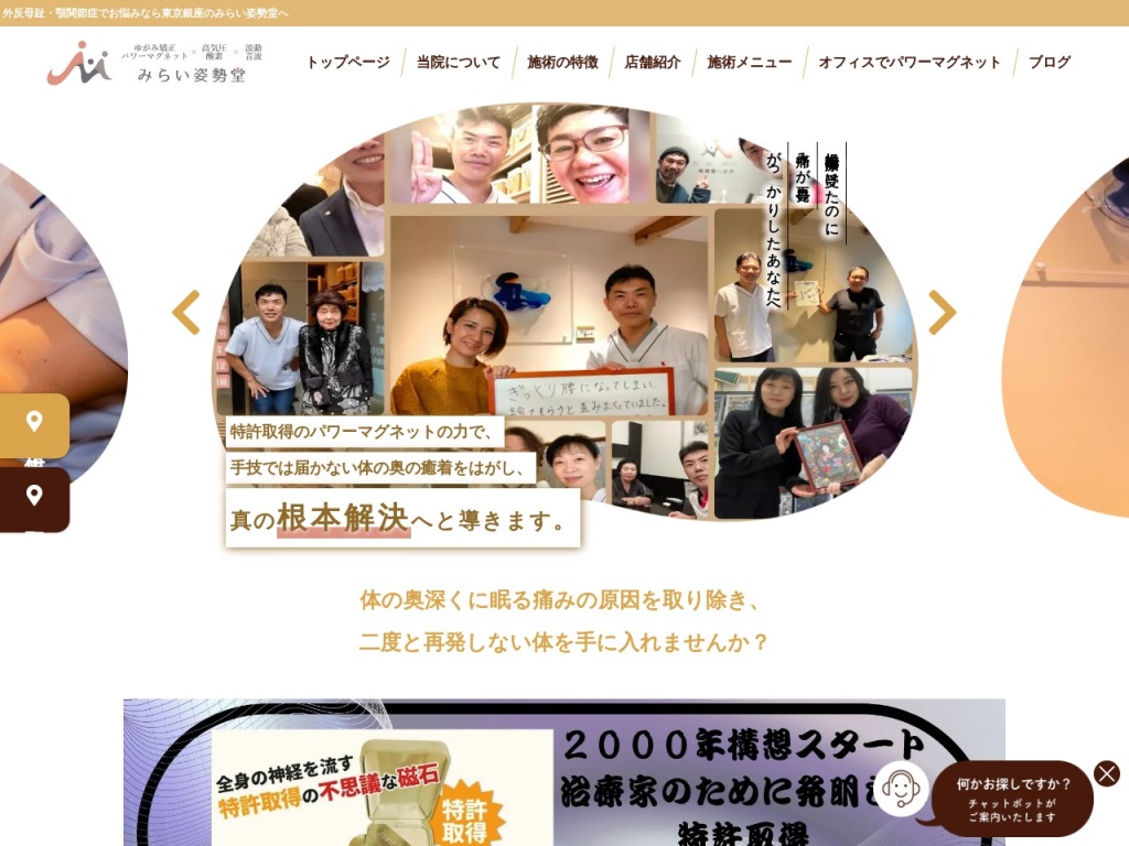 みらい姿勢堂 銀座本店 | 姿勢改善と食事指導を組み合わせた総合的なアプローチ | 10:00-21:00 |